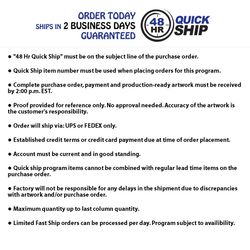 This product will ship in 2 business days if program requirements are met. Proof provided for reference only. No approval needed. Accuracy of the artwork is the customer's responsibility.