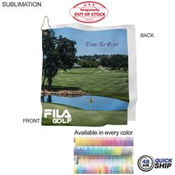 Microfiber golf towels give a high perceived value at a great price. Microfiber suede is soft, lightweight and highly absorbent. Usage: Golf Tournaments, Corporate Events, Teams, Fitness, Health Clubs. Price includes full color sublimation. Max Imprint: 15" x 15"L.