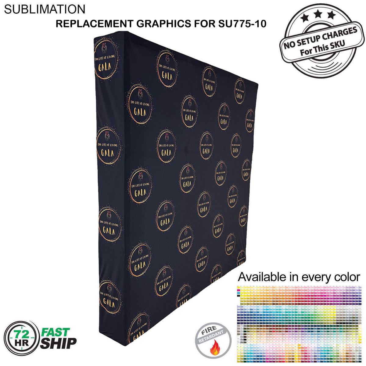 Out with the old, in with the new with replacement graphics. Replacing Graphics takes seconds to install and is convenient. Replacement Graphics for 7.5' wide Straight Wall Full Height Tension Fabric Pop-up Display, Hop-up banner with Wrap End Caps. Graphics have velcro in the back for easy installation to the hardware. These replacement graphics will wrap around to the sides of the wall for a sleek, complete look. Graphics can be whatever you want, step and repeat, Photo images, full colors logo (s). Hardware and carry bag not included. Usage: Tradeshows, Events, Conferences, Business, Reception Area, Retail, Airport, Display kit, Media Wall, Zoom Meetings, Photo Backdrop, Corporate events, Wedding and Party photo backdrop, Press Conferences, Interviews, Retail, Offices. Price includes full color graphics edge to edge. Max Imprint: 90"W x 90"H