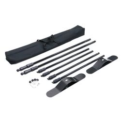 - 3" pole pockets at the top and bottom for easy installation. A turn lock clamping system lets you adjust height; push-button connectors on the horizontal poles let you adjust width. Reinforced joints keep the graphics taut over an extended period of time. Small feet for a discreet footprint.