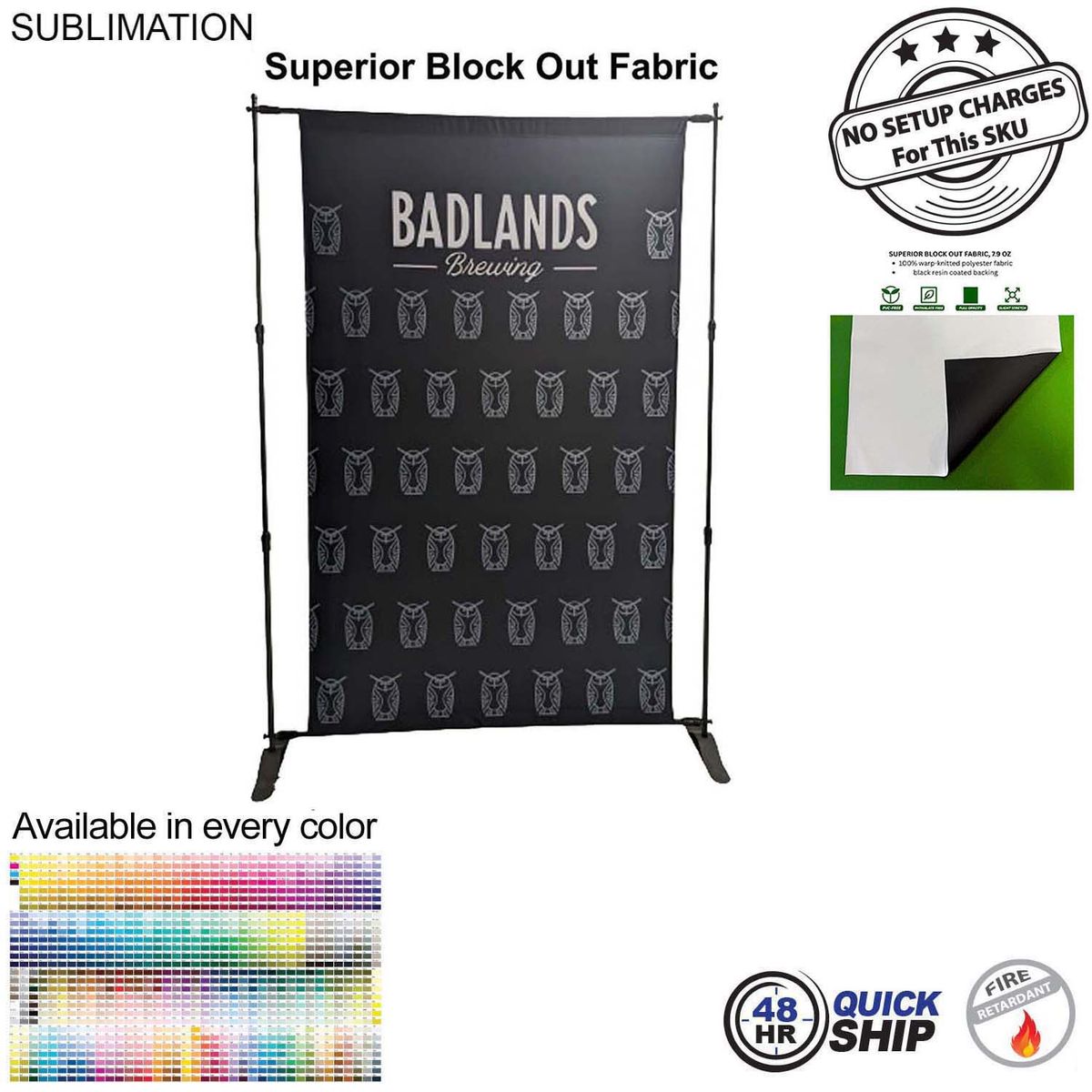 - Our superior block out fabric display with black backing is perfect for bright, sun-filled spaces. The specialized material stops light from penetrating the fabric, ensuring vivid graphics and full privacy. Includes Hardware (Adjustable display stand). Telescopic poles adjust for your preferred height and width. Poles are strong and durable. Aluminum frame resists heat and corrosion for longevity. Our hardware is robust. Please see product assembly instructions in additional images and link in description. Superior Block Out Fabric 7.9oz. 100% warp-knitted polyester fabric. black resin coating back. Artwork is sublimated on premium polyester knit fabric. Its a high-quality material which is durable. Available in every pantone PMS color and with Unlimited Graphics possibilities to create your unique display, Media wall, Backdrop. Dye-sublimation printing delivers vivid graphics. Step and Repeat Graphics are a popular choice for this item.