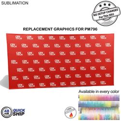 Out with the old, in with the new with replacement graphics. Replacing Graphics takes seconds to install and is convenient. Replacement Graphics for 15' wide Straight Wall Full Height Tension Fabric Pop-up Display, Hop-up Banner. Graphics have velcro in the back for easy installation to the hardware. Graphics can be whatever you want, step and repeat, Photo images, full colors logo (s). Hardware and carry bag not included. Usage: Tradeshows, Events, Conferences, Business, Reception Area, Retail, Airport, Display kit, Media Wall, Zoom Meetings, Photo Backdrop, Corporate events, Wedding and Party photo backdrop, Press Conferences, Interviews, Retail, Offices. Price includes full color graphics edge to edge. Max Imprint: 180"W x 90"H