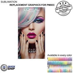 Out with the old, in with the new with replacement graphics. Replacing Graphics takes seconds and is convenient. Sublimation Graphics Printed 1 side in full color on Premium polyester fabric with Silicone Edge Graphics (SEG) binding to create a smooth, edge-to-edge finish with no wrinkles, curls. Hardware not included. Hardware sku # BL803 or Full kit (hardware and graphics) sku # PM803. Usage: Tradeshows, Events, Conferences, Business, Reception Area, Retail, Airport, Display kit, Media Wall, Zoom Meetings, Photo Backdrop, Corporate events, Wedding and Party photo backdrop, Press Conferences, Interviews, Retail, Offices. Price includes full color graphics edge to edge. Max Imprint: 40"W x 80"H