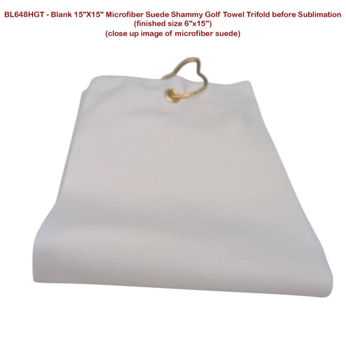 Microfiber golf towels give a high perceived value at a great price. Microfiber suede is soft, lightweight and highly absorbent. Usage: Golf Tournaments, Corporate Events, Teams, Fitness, Health Clubs. Price includes full color sublimation. Max Imprint: 6" x 15"L.