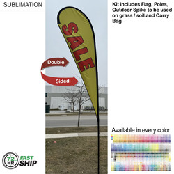 72 Hr Fast Ship - 13.5' Large Tear Drop Flag Kit, Full Color Graphics Double Side, Spike and Bag.