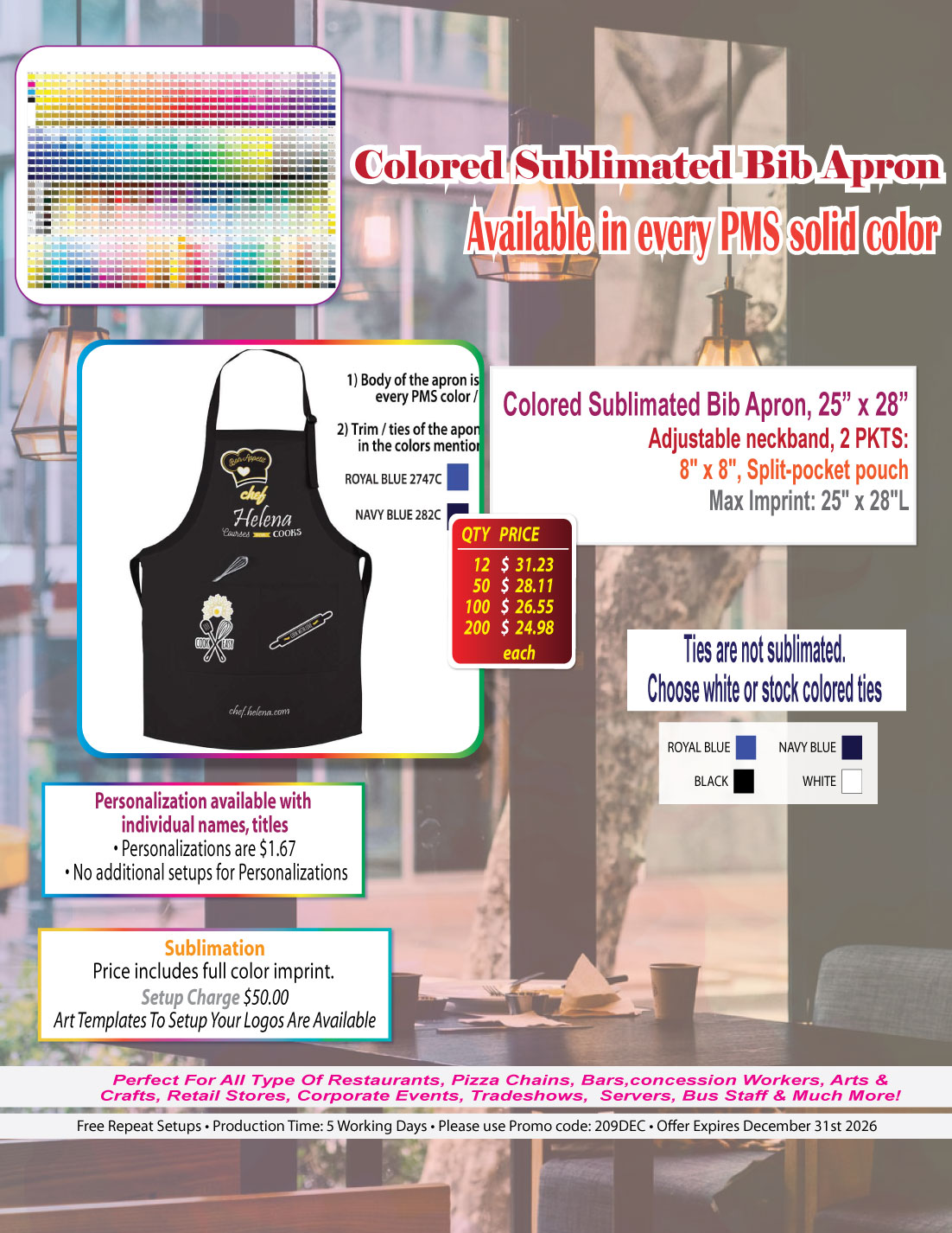 209 • Colored Sublimated Bib Apron