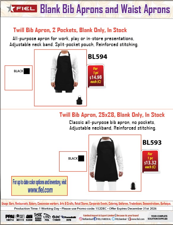 152 • Blank Bib Aprons and Waist Aprons